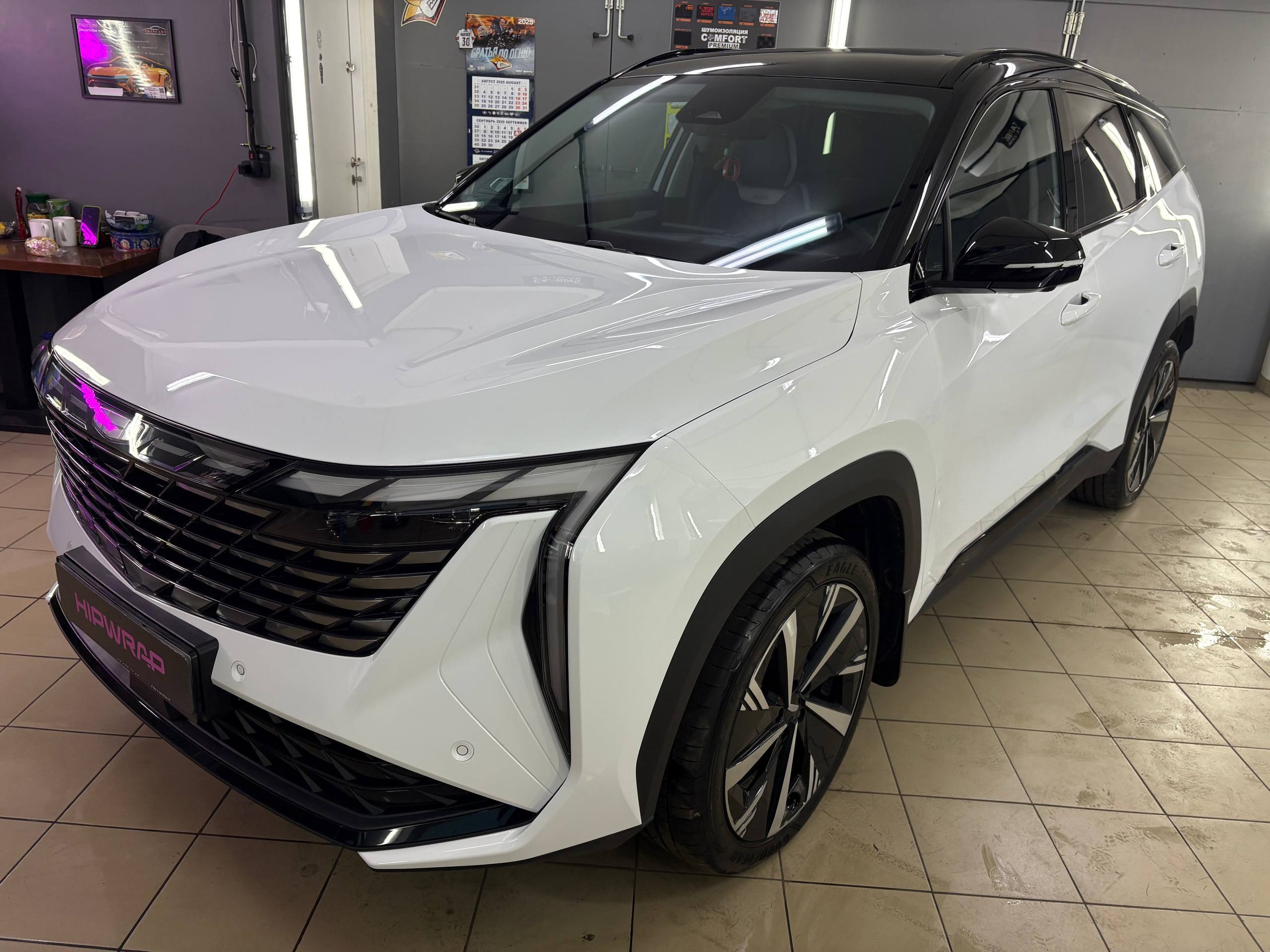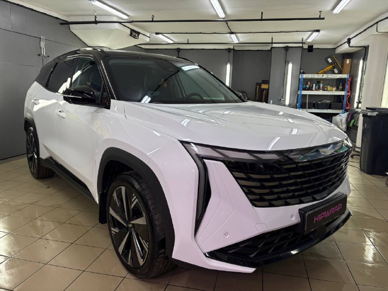 GEELY ATLAS полиуретановой пленкой CARBINS с жёстким топом, специально разработанным для белых автомобилей